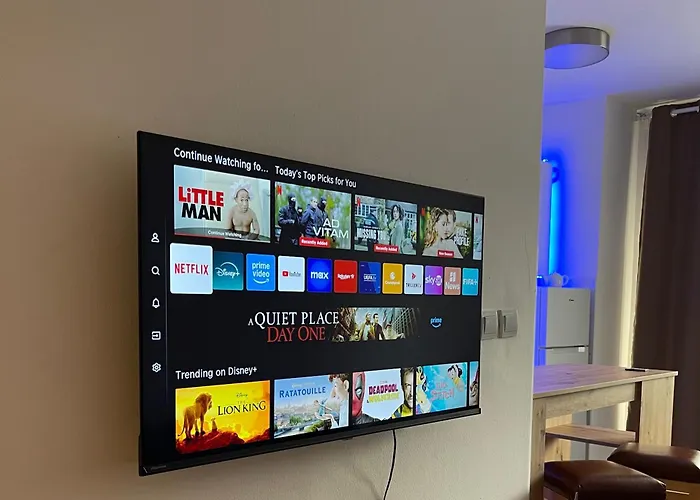 Die Gäste haben Zugang zu einem Balkon und einer Terrasse und profitieren von einer Klimaanlage sowie von modernen Annehmlichkeiten wie einem Fernsehen mit mehreren Kanälen und einem Flachbildfernseher mit Satellitenkanälen. Das New Luminious Apartment ist auch mit einem Schreibtisch ausgestattet. Gästen stehen Betten mit hypoallergenen Kissen zur Verfügung. Es gibt 1 Bad mit einer Badewanne, einer getrennten Toilette und einer Dusche und einem Haartrockner und Handtüchern.